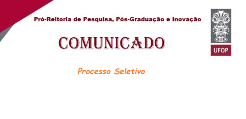 ![]() Estão disponíveis os resultados preliminares dos projetos recomendados, submetidos aos editais dos programas PIBIC/FAPEMIG/UFOP e PIVIC-1S/UFOP. Os pareceres dos projetos estão disponíveis no Sistema de Submissão de Projetos de Iniciação... |